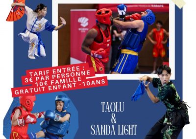 Afin de tester le Sanda (boxe chinoise), le Qi Gong et le Body Sanda, 2 cours d’essai sont proposés en début de saison pour les adultes, et 4 cours d’essai pour les enfants. Présentez-vous au bureau 15 minutes avant l’heure du cours et nous vous ferons signer une décharge.